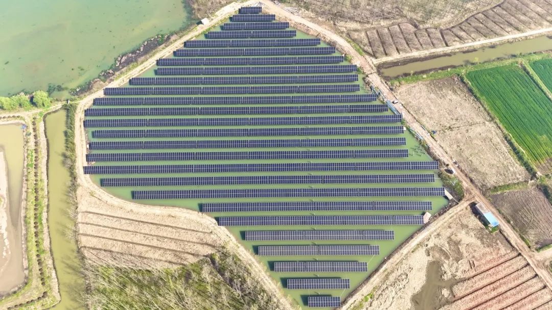 近年来,安徽省合肥市肥东县大力发展光伏新能源产业,加快发展新质生产力。米兰科技因地制宜布局多场景综合开发应用,通过持续的项目开发技术全方位创新,高效输出绿色能源,最大限度地提高能源利用效率,针对县域坑塘数量多、分布散的实际情况,整合选取了70余个闲置坑塘,“聚沙成塔”利用坑塘水面建设地面集中式渔光互补项目。总项目投运后将通过租赁电网侧储能项目容量实现光储融合,助力提升当地电网稳定性。