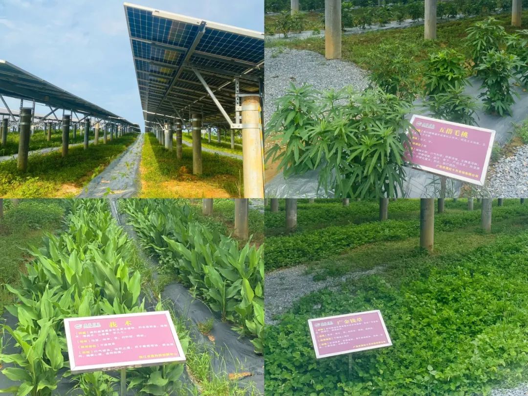 在红十月层峦叠翠的沃土之上,排列整齐的光伏板向远方延伸,一片片佛手、五指毛桃、广金钱草等南药矗立板间,阳光辉映下,满目新景如诗如画。